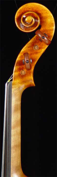 Visually striking, and tonally superior, for the artist player looking for an exceptional instrument. Available to either Guarneri or Stradivari model, and made with highly figured maple and choice spruce. Great workmanship, with rich and carrying sound. The Guarneri model has a slightly darker tone. Fine quality varnish and fittings.