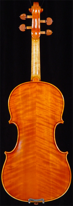 Attractively figured maple and superior spruce top make this violin a delight to own and play. The workmanship is outstanding, and the impressive sound and playing qualities equal instruments costing more than twice as much. High quality boxwood fittings, oblong plywood shell case with strap, and quality wood and horsehair bow. Impressive varnish. Size available 1/4 - 4/4. |